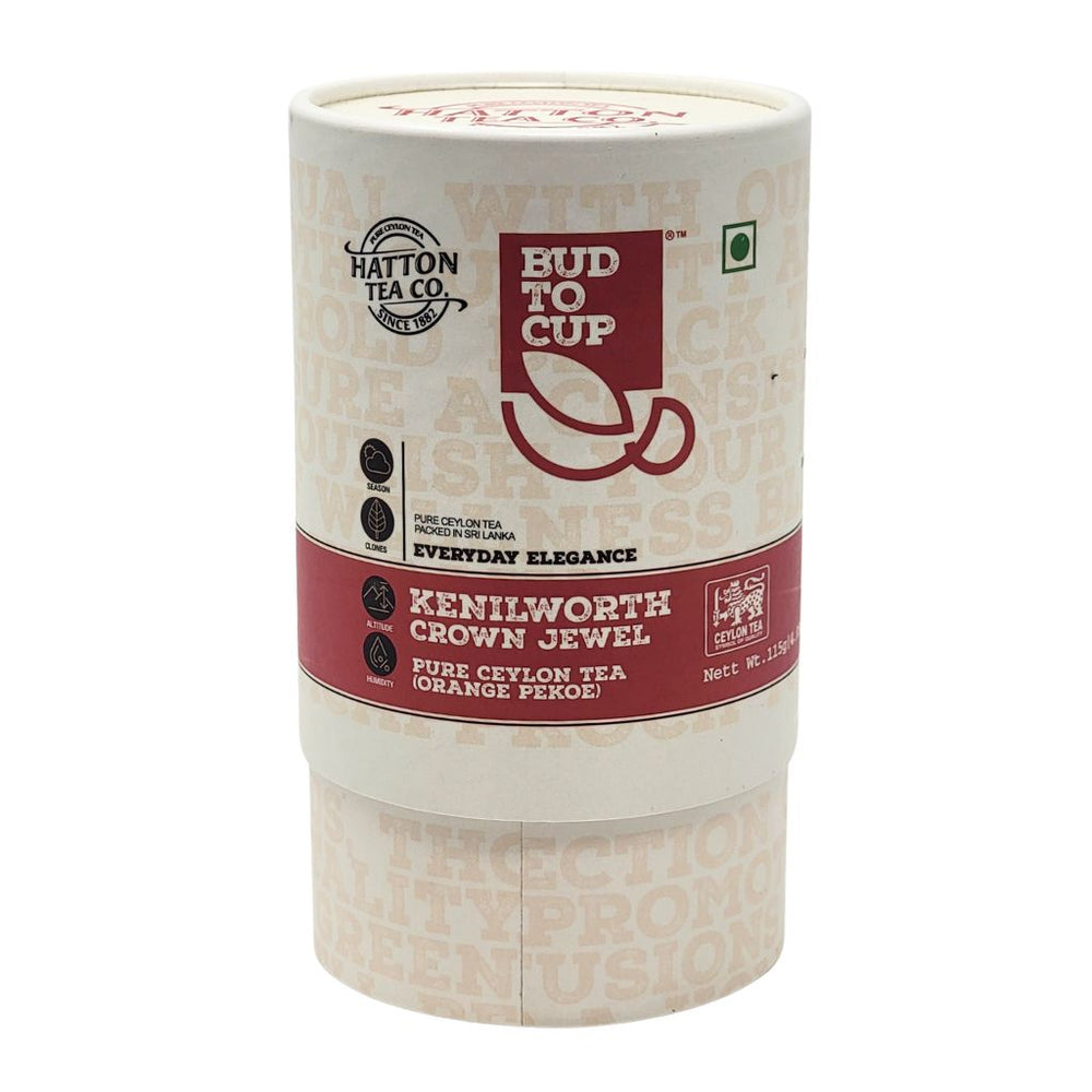 Experience the rich, bold taste of Kenilworth Crown Jewel tea. Harvested in Sri Lanka by G&G Agro Commodities, this gourmet blend is expertly crafted for the perfect "bud to cup" experience. With its convenient paper canister packaging, this 115g tea is perfect for any occasion.